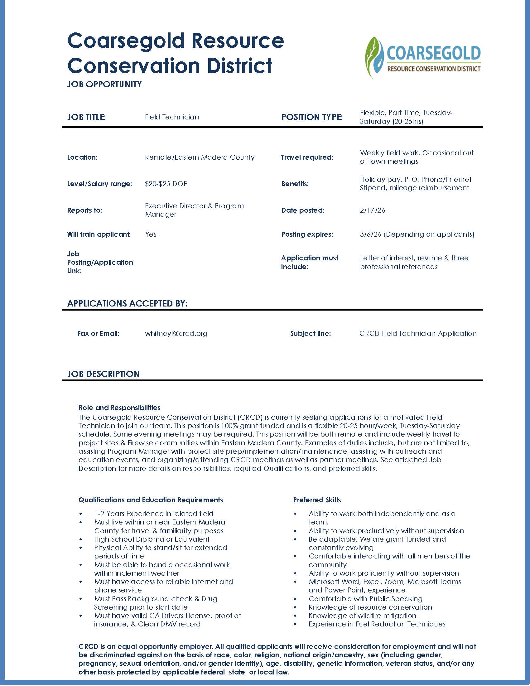 Field Tech Position